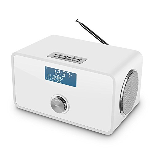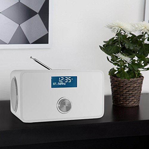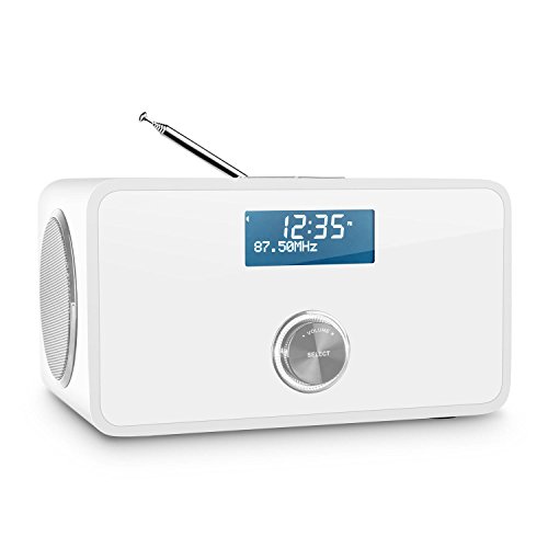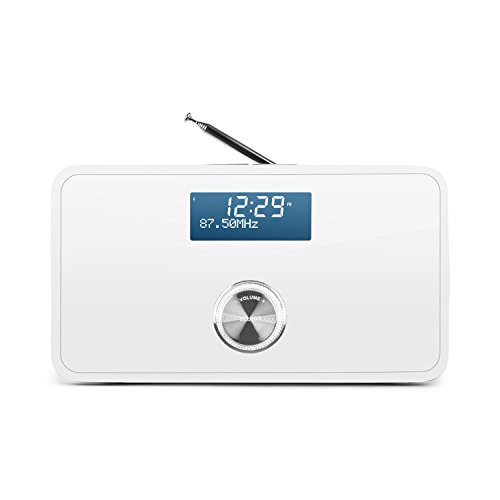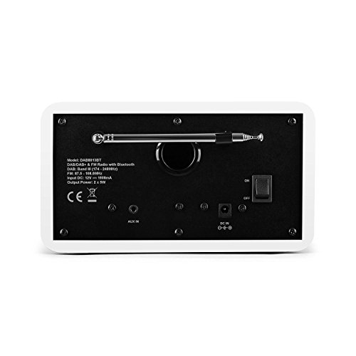 Kompaktes DAB/DAB+ Radio mit integriertem UKW-Tuner sowieBluetooth-Funktion und AUX-Eingang. RDS-Funktion, Dual-Alarm sowie Sleep-Timer und Schlummerfunktion. Weißes Bassreflexgehäuse mit verspiegelter Front und abgerundeten Kanten.***Testurteil von Digitalfernsehen (04/2016) mit „sehr gut“.***Das Auna DAB Step DAB/DAB+ Radio ist ein kompaktes Allround-Wunder,dessen modernes Funktionsangebot platzsparend und elegant verbaut wurde. Zur funktionalen Grundausstattung gehört sowohl ein digitaler DAB/DAB+ Radiotunerals auch ein analoger UKW/MW-Empfänger.