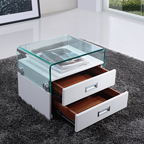 i-flair® – Nachttisch, Nachtkonsole aus hochwertigem Kunstleder – S69 Weiß
