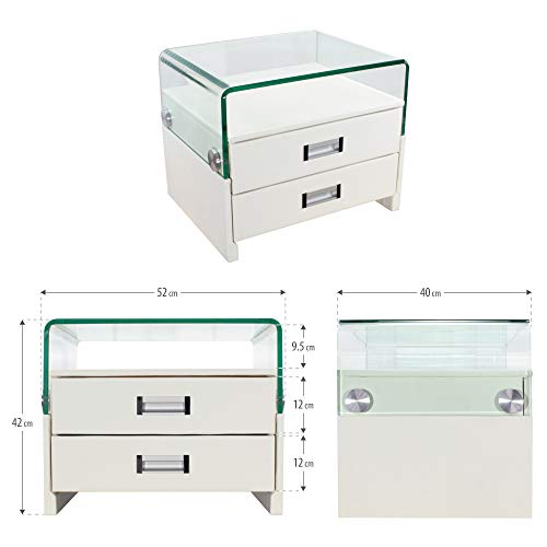 Der Designer Nachttisch wurde mit weißem Kunstleder bepolstert und fügt sich wunderbar in jedes Schlafzimmerdesign ein. Die gebogene Glasplatte besteht aus hochwertigem Echtglas und nicht aus Plexiglas. Sie erhalten bei uns einen sehr gut verarbeiteten Artikel. Unser Ziel: Einmal und immer wieder. Detaillierte Produktbeschreibung: – Abmessungen: Höhe: 41cm / Breite: 50cm / Tiefe: 40cm – Weitere Daten finden Sie im Detailfoto mit allen Maßen. – Massive Qualität, spitzen Verarbeitung Lieferumfang: – Der Nachttisch aufgebaut wie abgebildet, mit PU überzogen (sehr hochwertiges Kunstleder) (Deko’s sind nicht dabei, es handelt sich bei dem Angebot nur um den Nachttisch) Versand: Der Versand der Nachtkonsole erfolgt durch einen Paketdienstleister.